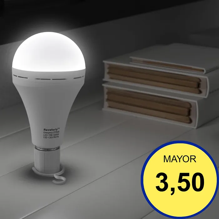 Es la solución definitiva para apagones, cortes de luz y malos ratos, permitiéndote olvidarte de las velas. Este bombillo con rosca E27 estándar se instala fácilmente (Plug & Play) y cuenta con una batería interna recargable que garantiza hasta 1-2 horas de iluminación de respaldo. Su función principal es que se enciende automáticamente al irse la luz, proporcionando una luz blanca brillante gracias a su tecnología LED de bajo consumo. Además, incluye un gancho portátil que lo convierte en una linterna de mano ideal para camping o paseos.