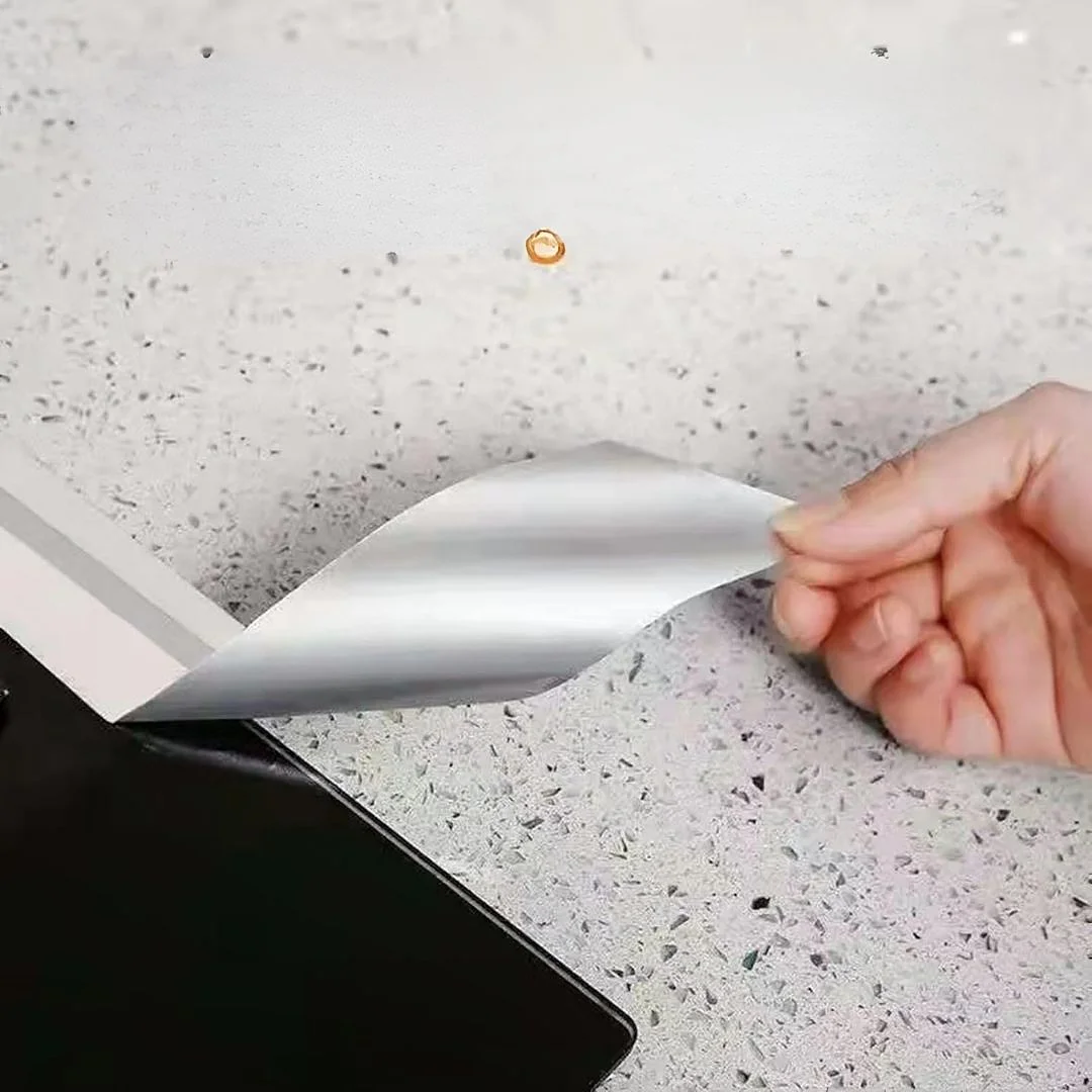 Su acabado metálico plateado le da un aspecto moderno y limpio, además de ser fácil de cortar y aplicar. Es resistente al agua, al calor y a la abrasión, garantizando una larga vida útil.