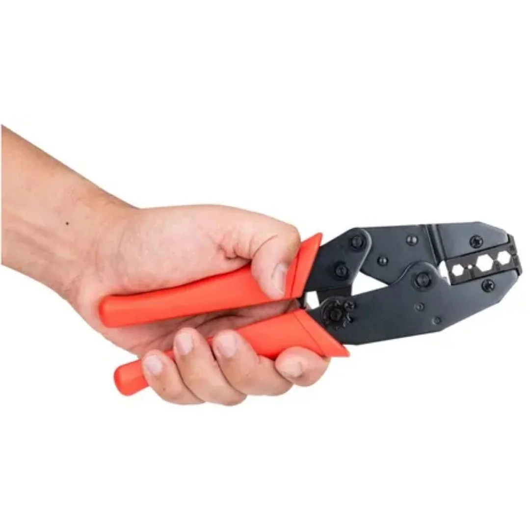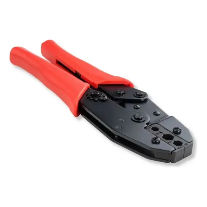 Es una herramienta profesional y resistente diseñada para engarzar conectores en cables coaxiales, asegurando una conexión firme y estable. Su cuerpo de acero carbono le otorga gran resistencia, mientras que sus mangos de PVC proporcionan un agarre cómodo. El mecanismo de carraca es clave para garantizar un engaste preciso y simétrico. Es compatible con conectores F, BNC y RCA, siendo indispensable en instalaciones de videovigilancia (CCTV) y en el montaje de sistemas de telecomunicaciones y transmisión de video.