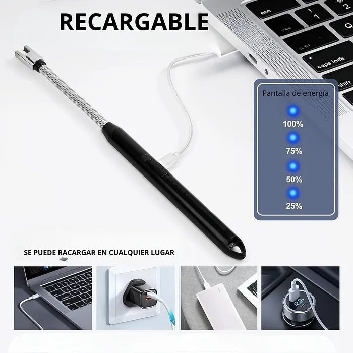 ¡Enciende con estilo, seguridad y sin llama con nuestro Encendedor Eléctrico de Arco Flexible y Recargable USB!
