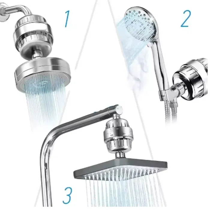 Disfruta de una experiencia de ducha renovadora con nuestro filtro de ducha de 15 etapas, diseñado para mejorar la calidad del agua y cuidar tu piel y cabello. Este avanzado sistema de purificación elimina cloro, metales pesados, sedimentos y otros contaminantes, proporcionando agua más limpia y saludable en cada ducha.