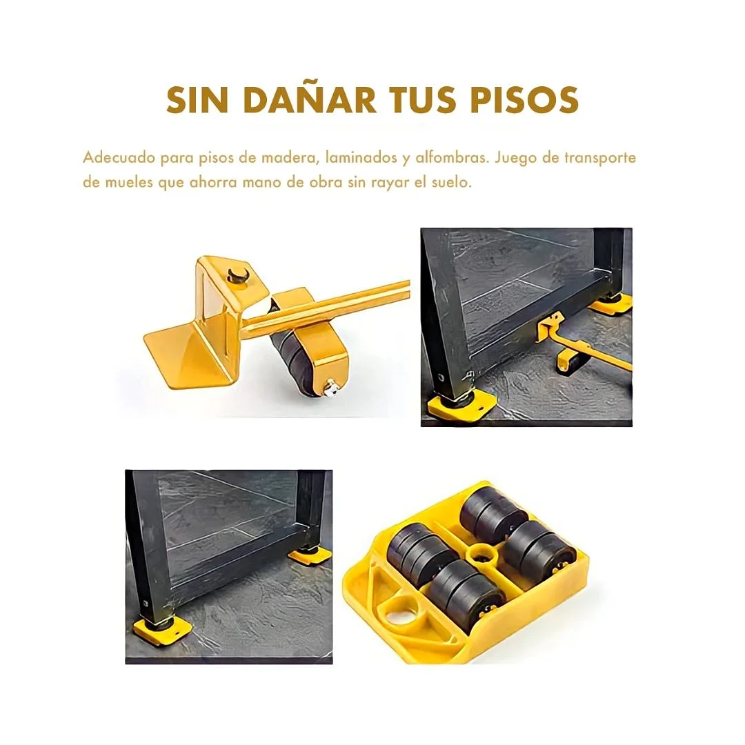 Este kit de ruedas para objetos pesados es la solución práctica y segura para mover muebles sin esfuerzo. Incluye una palanca resistente y cuatro bases deslizantes con superficie antideslizante que permiten levantar y trasladar sofás, estanterías, electrodomésticos y más, sin dañar el piso ni requerir fuerza excesiva.