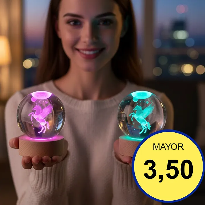 Transforma cualquier rincón con esta encantadora lámpara de esfera pegaso de 6 cm. Su diseño compacto y realista simula la textura de un pegaso, creando una atmósfera mágica y relajante. Ideal para decorar escritorios, mesas de noche, estanterías o regalar en ocasiones especiales.
