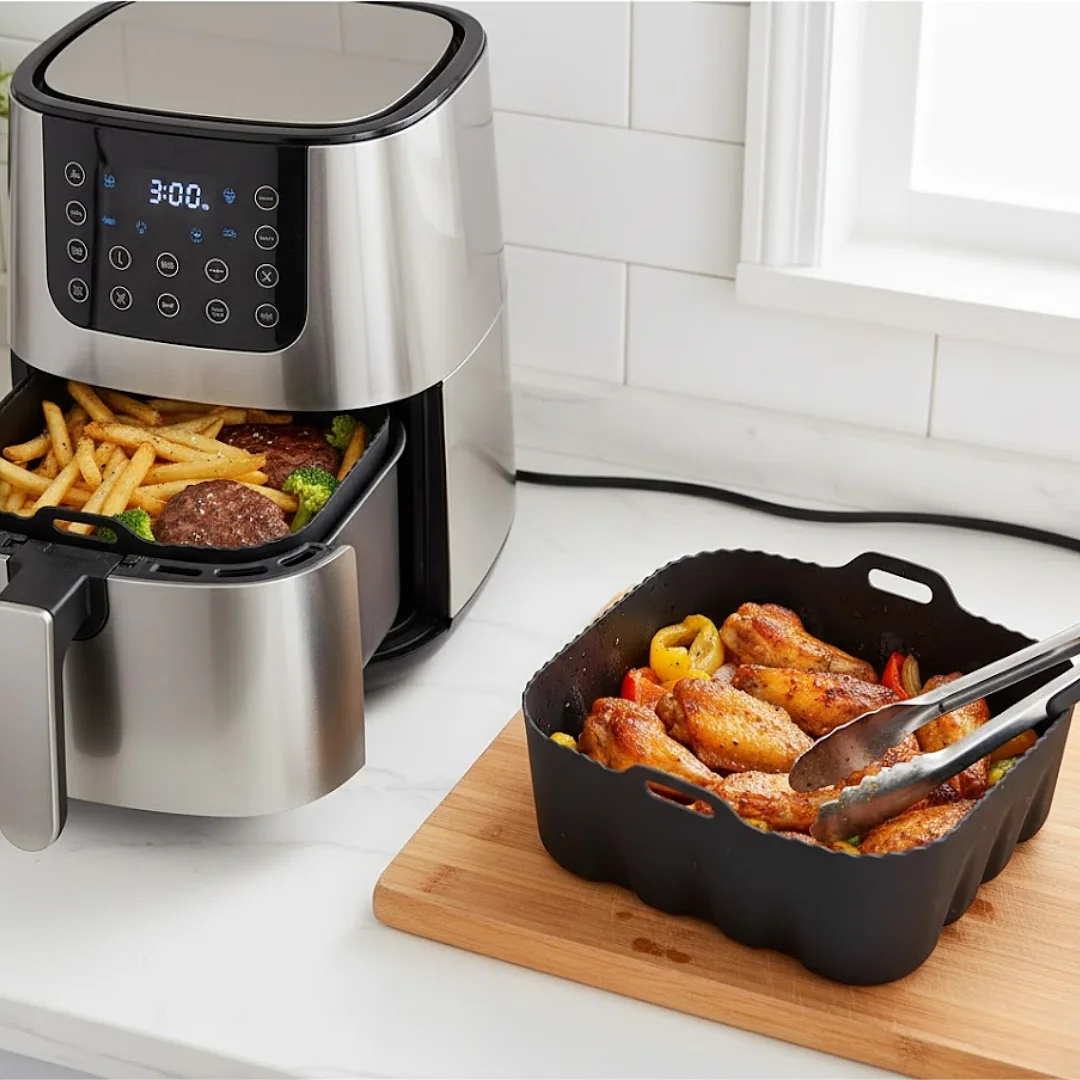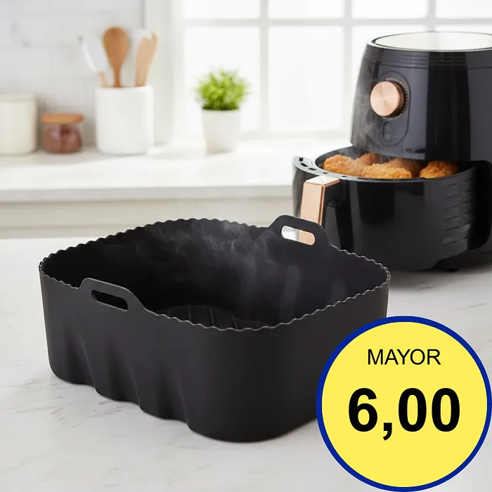 Mantén tu freidora impecable con el Molde de Silicón definitivo. Conocido popularmente como el Air Fryer Liner, este accesorio esencial evita que la grasa y los restos de comida se peguen a tu cesta. Es la solución perfecta, ecológica y duradera para cocinar tus recetas favoritas sin preocuparte por la limpieza difícil después de cada comida.
