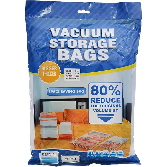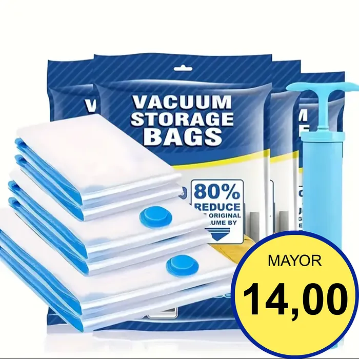 ¡Dile adiós al desorden y recupera tu clóset! Las Bolsas al Vacío (también conocidas como Space Saver Bags) son la solución definitiva para organizar tu hogar. Protege tu ropa y edredones del polvo y la humedad mientras reduces su volumen hasta en un 80%. ¡La forma más inteligente y compacta de almacenar lo que más quieres!