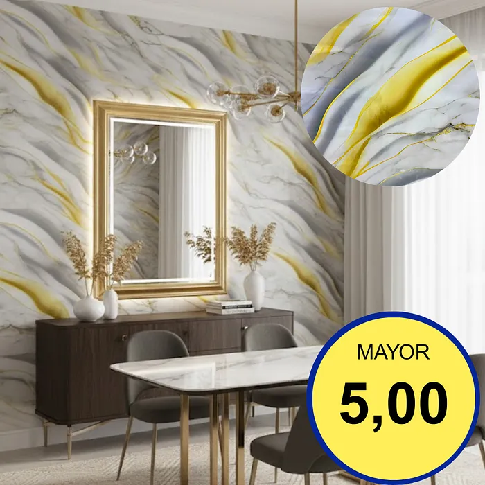 Es la solución de renovación instantánea y lujosa para cualquier superficie. Este vinil autoadhesivo de PVC de alta calidad mide 60 cm x 5 m y cuenta con una adherencia fuerte que facilita una instalación fácil y rápida sin herramientas. Sus propiedades impermeables y lavables lo hacen ideal para mesones, cocinas y baños, proporcionando una protección duradera contra el agua y el aceite. Renueva tus paredes y encimeras con un estilo lujoso y disfruta de la limpieza fácil y el acabado moderno.