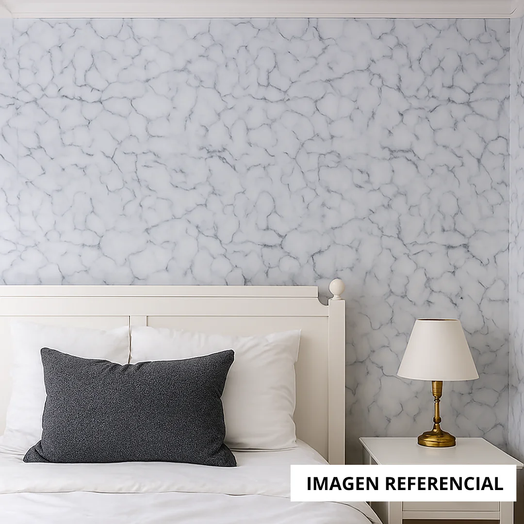 La solución $DIY$ para una renovación sin obras. Su diseño Mármol Gris Azulado con vetas blancas aporta profundidad y elegancia moderna. Este Vinilo de Alta Calidad es ideal para forrar paredes y muebles fácilmente. ¡Transforma tus espacios con sofisticación!