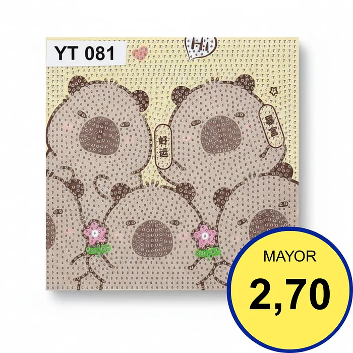 Materiales Incluidos Lienzo adhesivo impreso; Diamantes acrílicos (brillantes); Lápiz aplicador; Bandeja; Pegamento