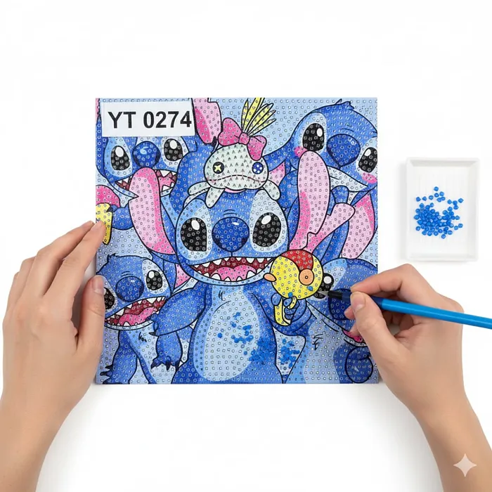 Materiales Incluidos Lienzo adhesivo impreso; Diamantes acrílicos (brillantes); Lápiz aplicador; Bandeja; Pegamento