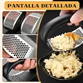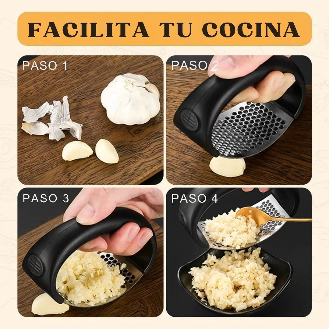 Simplifica tu cocina con esta prensa de ajo manual, diseñada para extraer el máximo sabor sin esfuerzo. Su estructura de acero inoxidable garantiza durabilidad y resistencia, mientras que su mango ergonómico ofrece comodidad en cada uso. Ideal para chefs, cocineros caseros y amantes de la comida saludable, permite triturar dientes de ajo en segundos sin necesidad de pelarlos. Disponible en colores sujetos a disponibilidad, añade un toque de estilo a tu cocina.