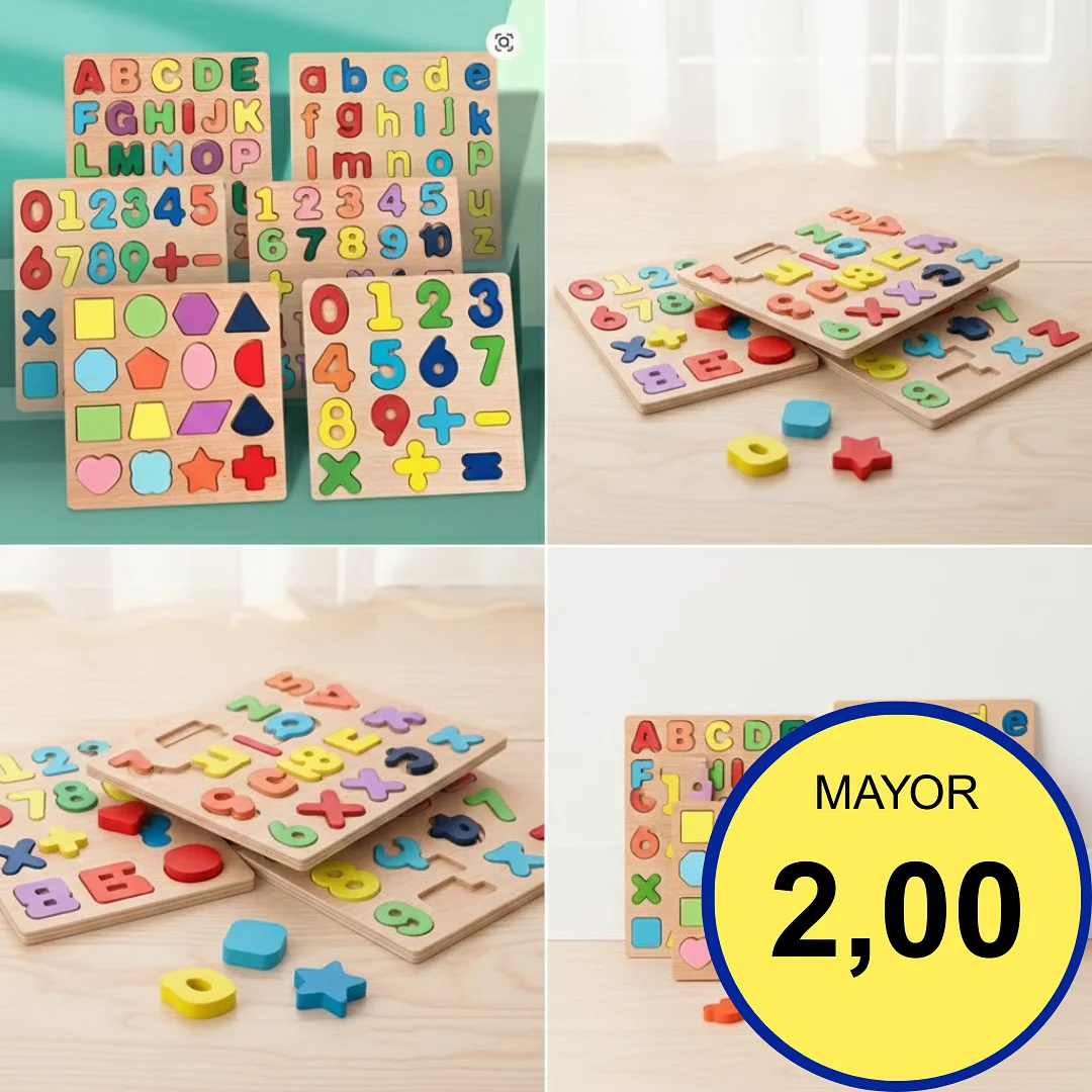 Es la herramienta ideal y segura para el desarrollo cognitivo y motriz de niños en edad preescolar y primaria. Fabricado en madera resistente y con un diseño colorido, incluye letras encastrables que promueven el aprendizaje táctil y el reconocimiento de letras, formas y números. Sus medidas compactas de 20x20 cm lo hacen fácil de manejar, siendo perfecto para practicar el abecedario y la formación de palabras tanto en casa como en la escuela.
