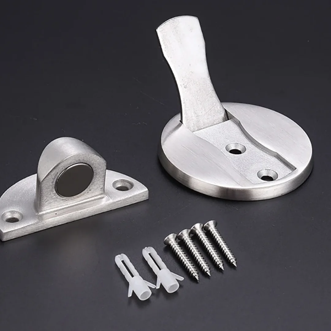Es la solución ideal para seguridad y comodidad en tu hogar u oficina con un estilo moderno. Fabricado en acero inoxidable resistente, este práctico accesorio utiliza un imán de alta potencia para una fijación magnética automática que mantiene la puerta abierta de forma segura y evita cierres bruscos o golpes. Es compatible con puertas de madera, metal o vidrio, y su instalación es sencilla (incluye tornillos) en piso o pared. Su diseño compacto y discreto se adapta a cualquier decoración mientras protege tus paredes y muebles de impactos.