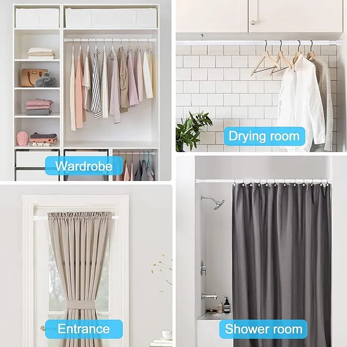 La solución perfecta para ventanas de cualquier tamaño que combina funcionalidad y diseño moderno. Su sistema de extensión telescópica permite un ajuste rápido y personalizado con un amplio rango de ajuste (70 cm hasta 240 cm), sin necesidad de cortes ni herramientas. Ofrece un soporte firme y seguro compatible con todo tipo de cortinas (incluyendo blackout y decorativas). Es fácil de instalar (incluso sin perforaciones, según el modelo) y aporta elegancia y orden a salas, habitaciones, cocinas y oficinas.
